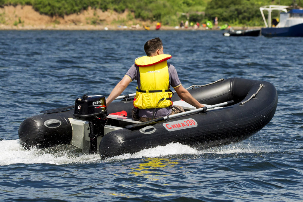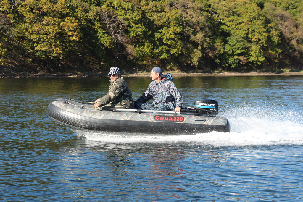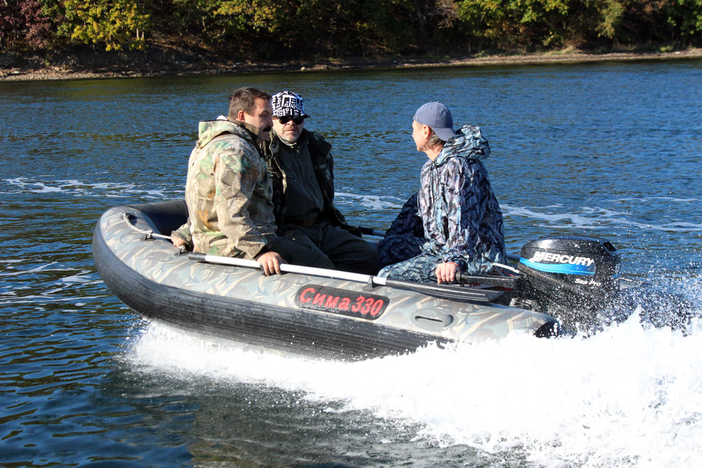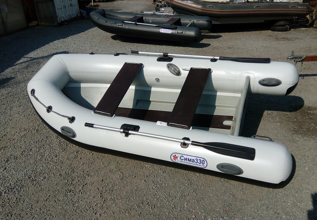 Была поставлена задача, чтобы один человек мог погрузить лодку на багажник легкового автомобиля. Результат достигнут в размере 3,3м. Наш РИБ получился на пять килограмма легче, чем обыкновенные складные лодки из ПВХ. РИБ «Сима-330» весит всего 52 килограмма. За счет увеличенной килеватости, палуба получилась ниже, чем у складных надувных лодок и соответственно сместился вниз центр тяжести, за счет этого улучшилась остойчивость.
